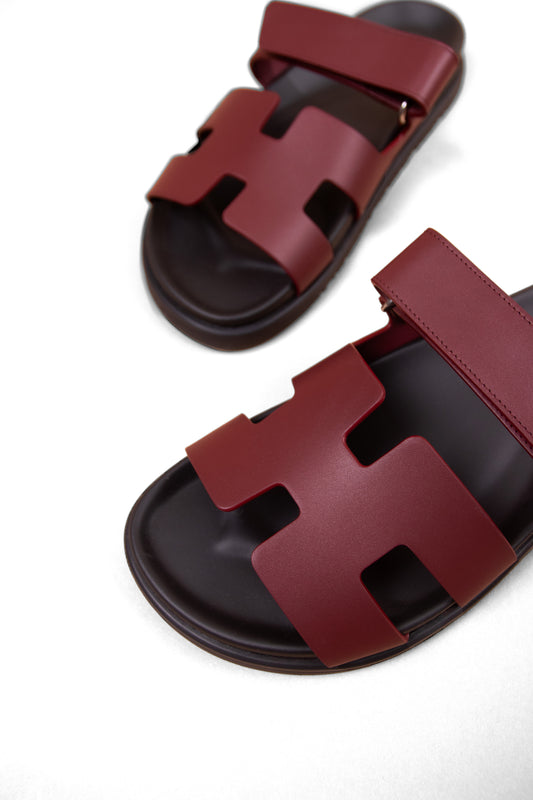 هيرميس صندل من جلد الغزال Chypre باللون Rouge Cinétique / ذهبي