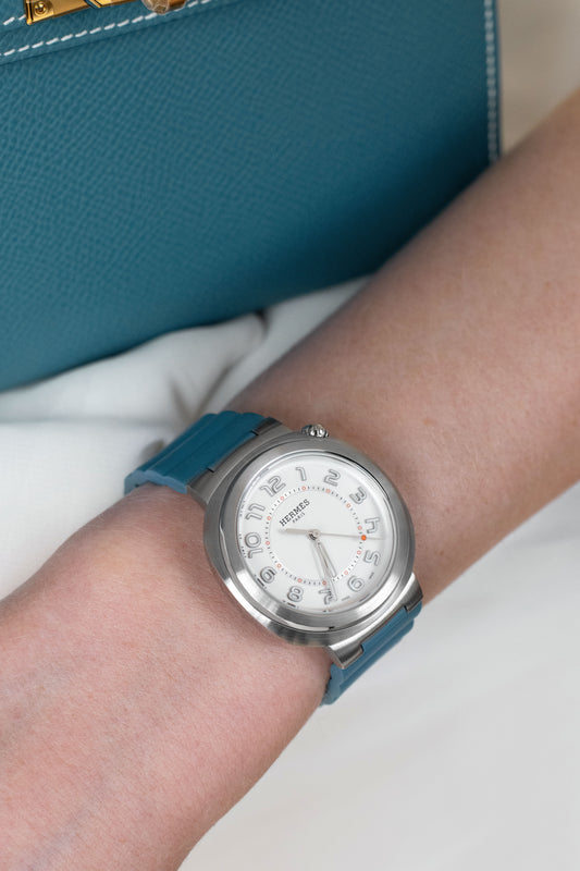 Hermès Cut Watch with Mini Kelly 20 Epsom Blue Jean GHW