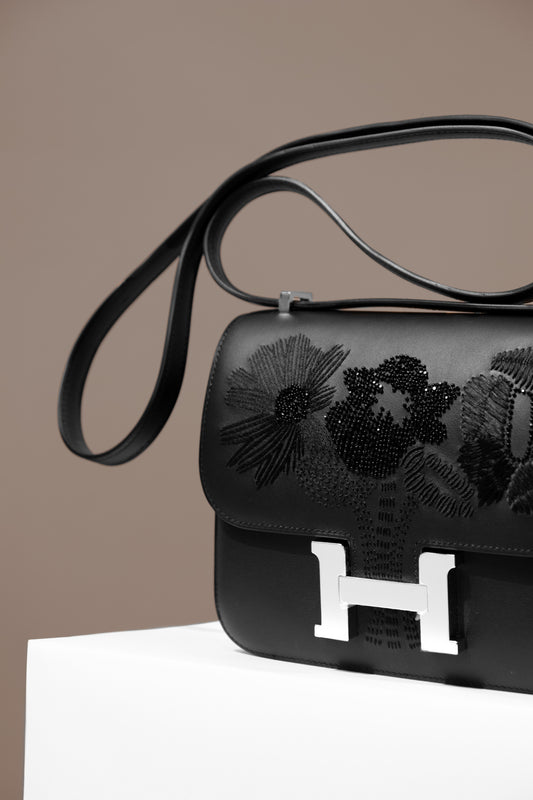 Hermès Dancing Flowers Mini Constance 18 Swift Black PHW