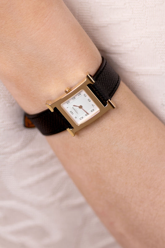 Hermès H Heure Watches in Gold Alligator 30mm & Gold Epsom 25mm
