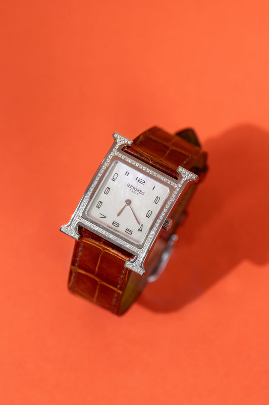 Hermès H Heure Watch 21mm with Diamond & Mother of Pearl Dial