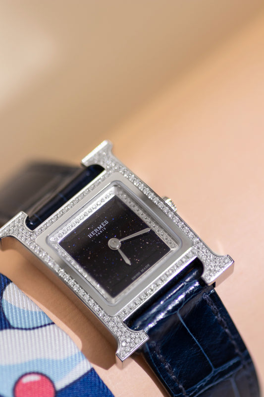 ساعة هيرميس H Heure مقاس 25 ملم من الياقوت الأزرق