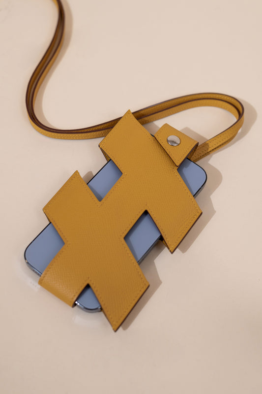 Hermès H-Tag Phone Case in Jaune Ambre & Gold