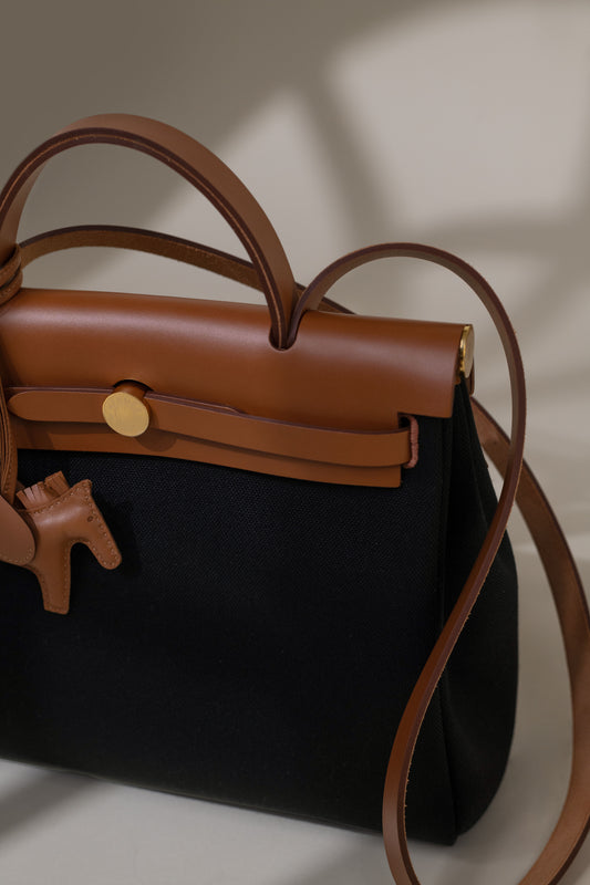 حقيبة هيرميس هيرباج زيب 31 مطلية باللون الأسود-البيج-الأسود مع تويللي