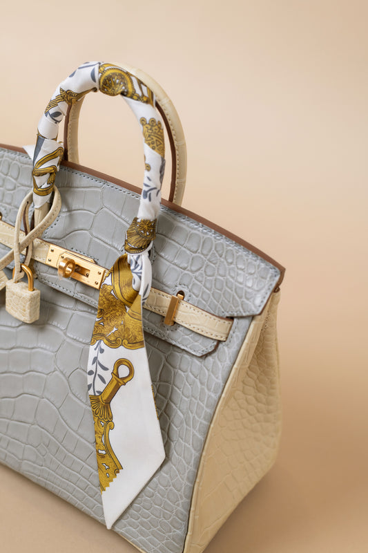 Hermès HSS Birkin 25 Matte Crocodile in Vanilla/Gris Perle GHW