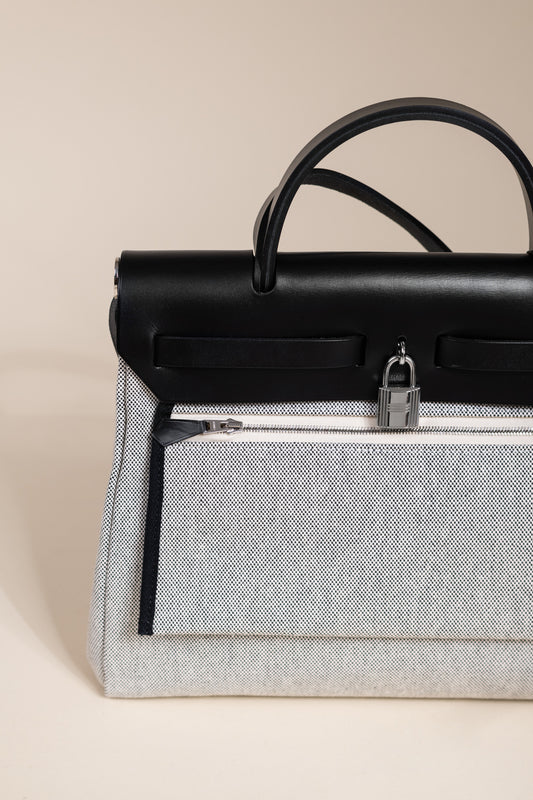 حقيبة هيرميس هيرباج زيب 31 باللون الأسود والأبيض والأسود مع تويلي