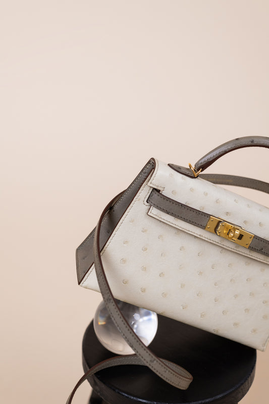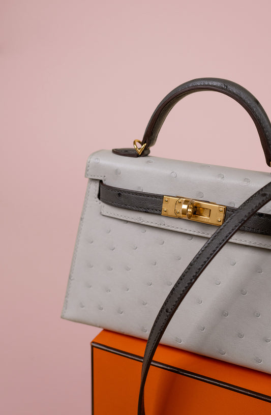 Hermès HSS Mini Kelly 20 Ostrich Gris Perle and Graphite GHW