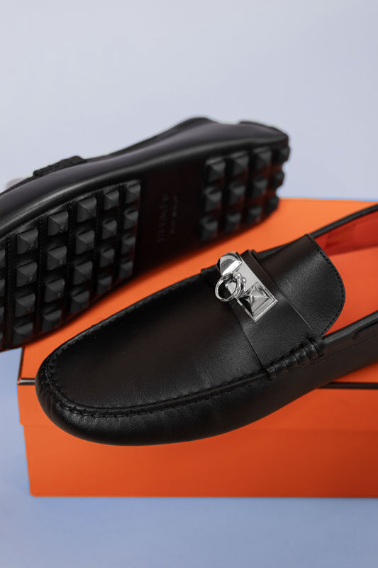 Hermès Irving Black Loafers with Kelly 25 Epsom Depeches in Black PHW