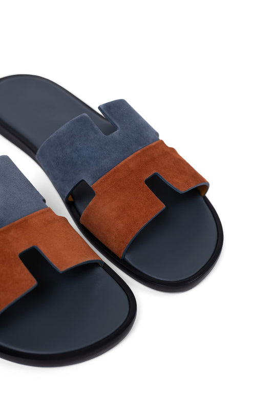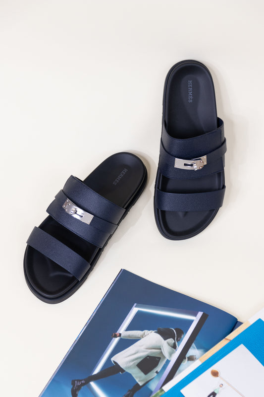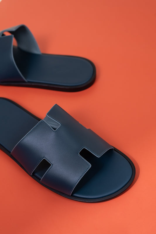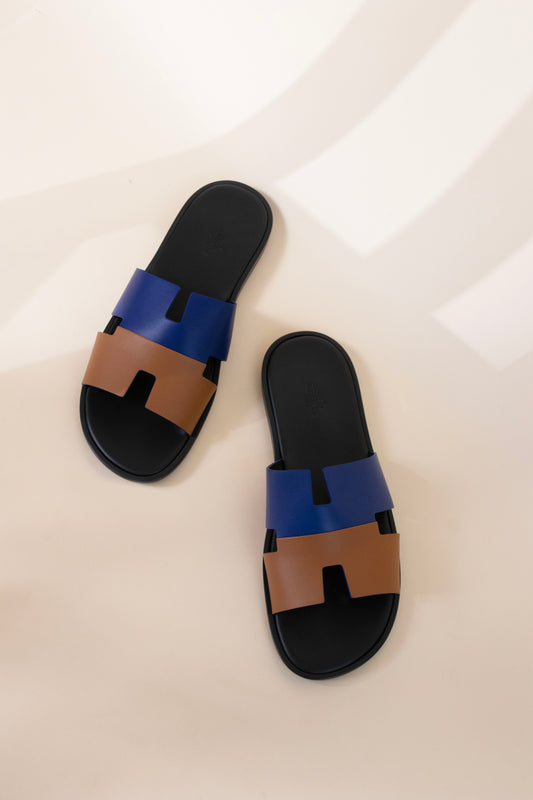 Hermès Izmir Sandals Bleu Sanatorin/Brun Acajou