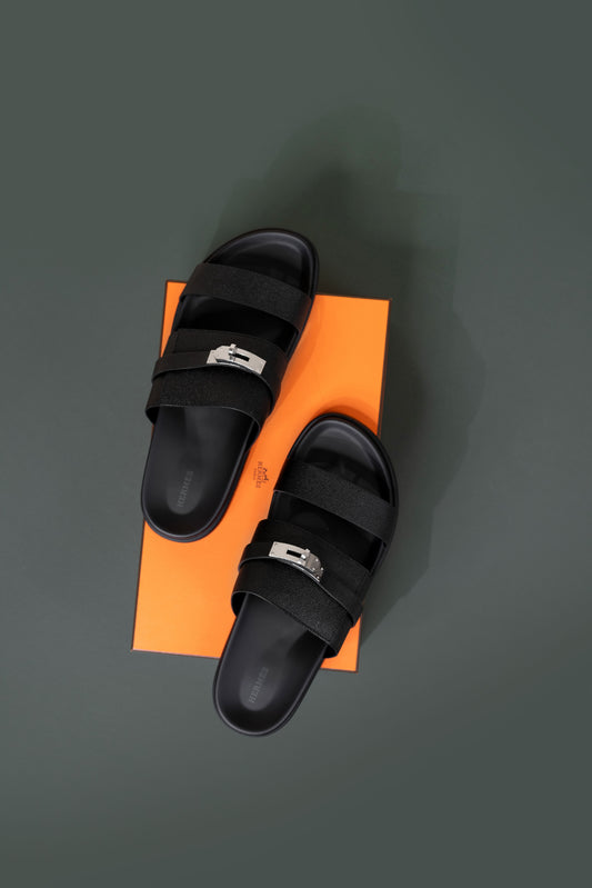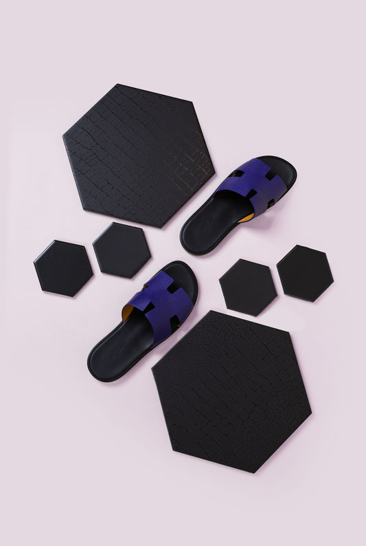 هيرميس - صندل إزمير باللون الأزرق سبلاش/الأسود