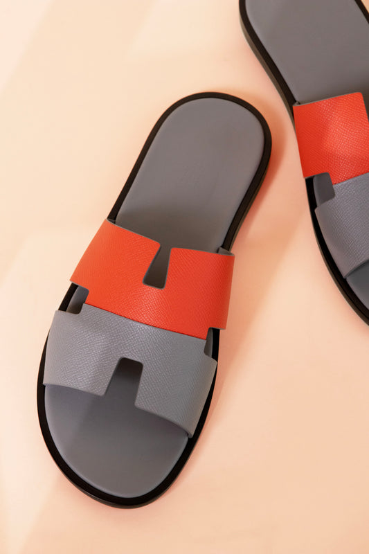 Hermès Izmir Sandals in Orange Poppy/Gris Brume