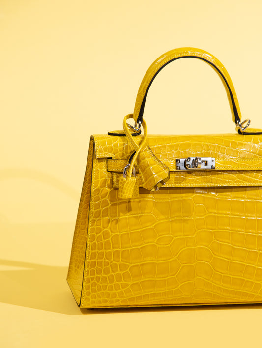 Hermès Kelly 25 Shiny Alligator in Mimosa PHW