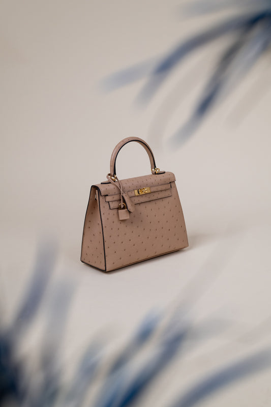 هيرميس كيلي 25 شاي النعامة GHW وكيلي 25 شاي التمساح غير اللامع GHW