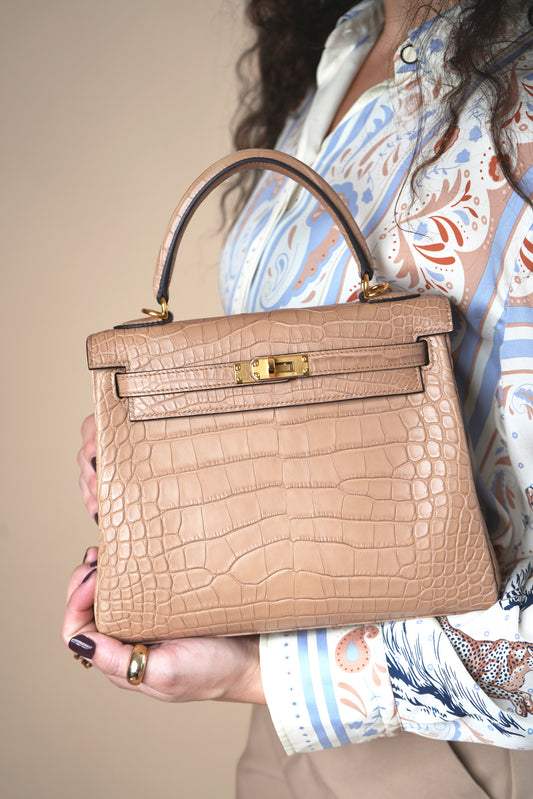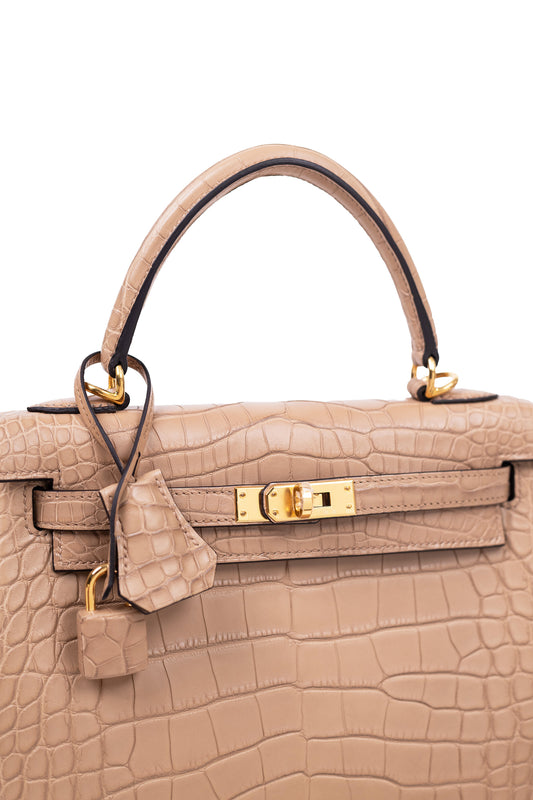 Hermès Kelly 25 Matte Alligator Chai GHW