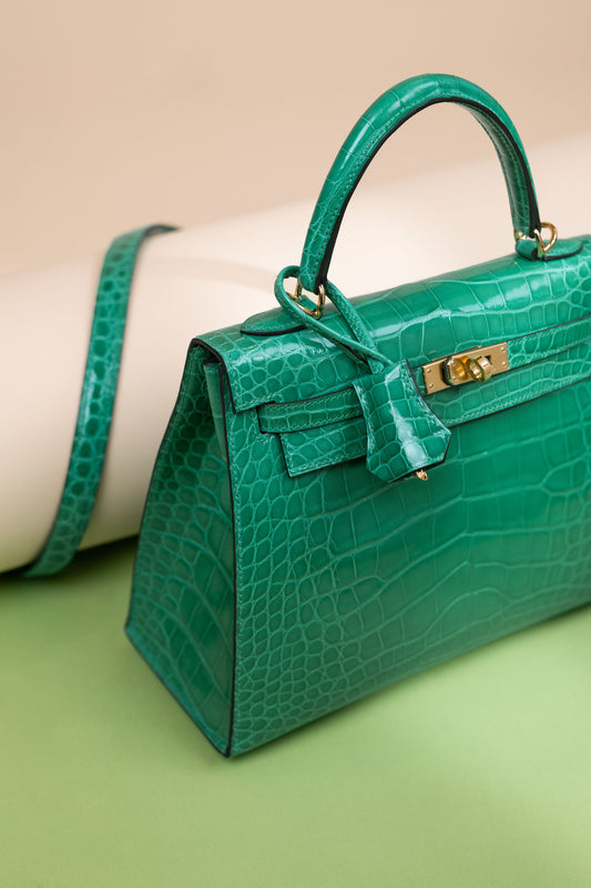 Hermès Kelly 25 Shiny Crocodile Vert Jade GHW