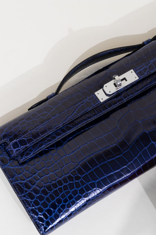Hermès Kelly Cut Crocodile Clutch in Blue Izmirالسعر العادي $0.00 USDالسعر العاديسعر الوحدة / لكل-