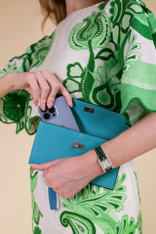 محفظة هيرميس كيلي طويلة للجيب باللون الأزرق دي نورد PHW