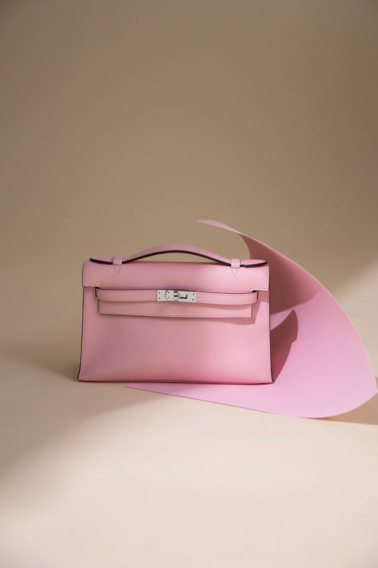 Hermès Kelly Pochette Shiny Crocodile in Rose Sheheraza PHW