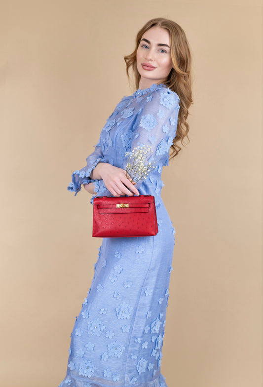 Hermès Kelly Pochette Ostrich in Rouge Vif GHW