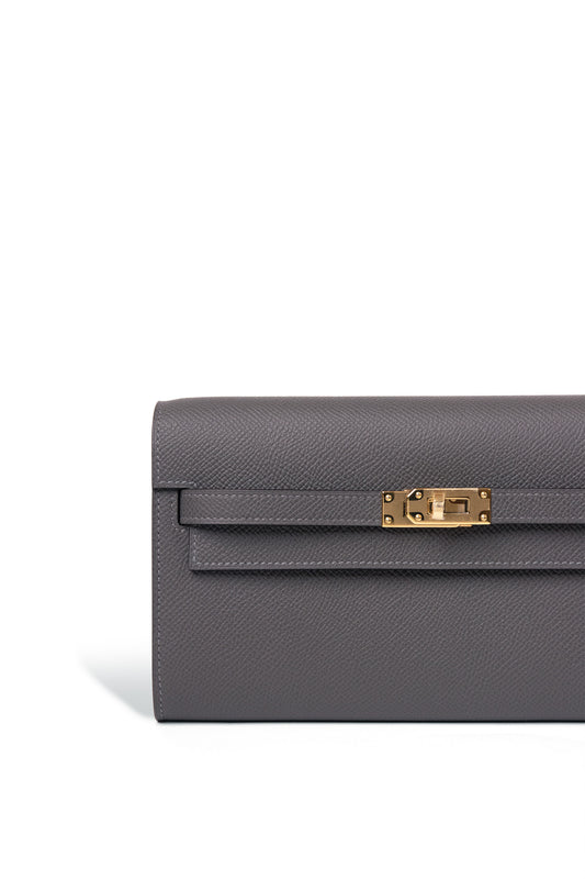 Hermès Kelly Pocket Compact Wallet in Etain GHW