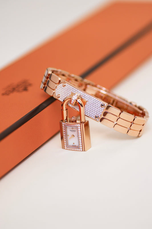 ساعة هيرميس كيلي من الذهب الوردي والماس