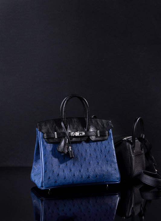 Hermès Limited Edition Birkin 25 Ostrich in Blue Sapphire/Black PHW