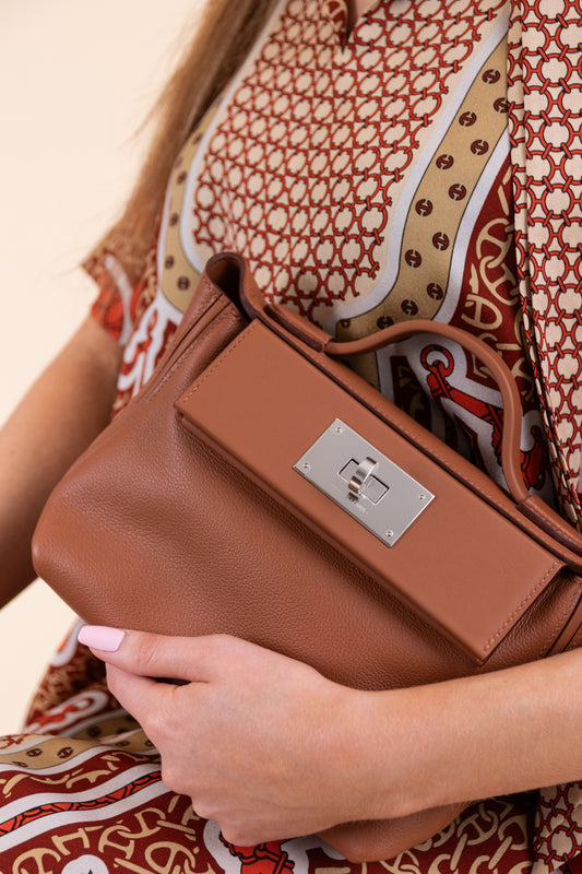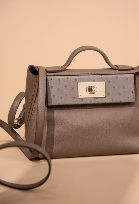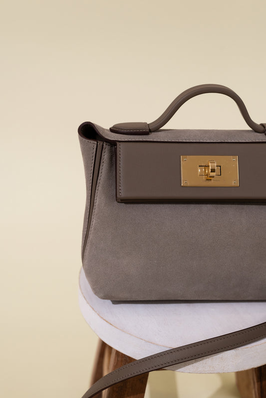 Hermès Mini 24/24 Grizzly Etoupe with Oran Etoupe Sandals