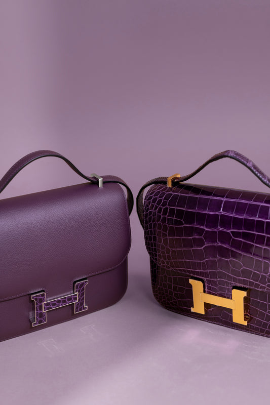 Hermès Mini Constance 18 Evercolor Cassis with Exotic Buckle & Constance 18 Shiny Alligator Cassis GHW