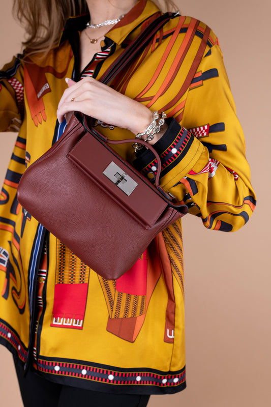 Hermès Mini 24/24 باللون Cassis/Rouge Grenat مع GHW