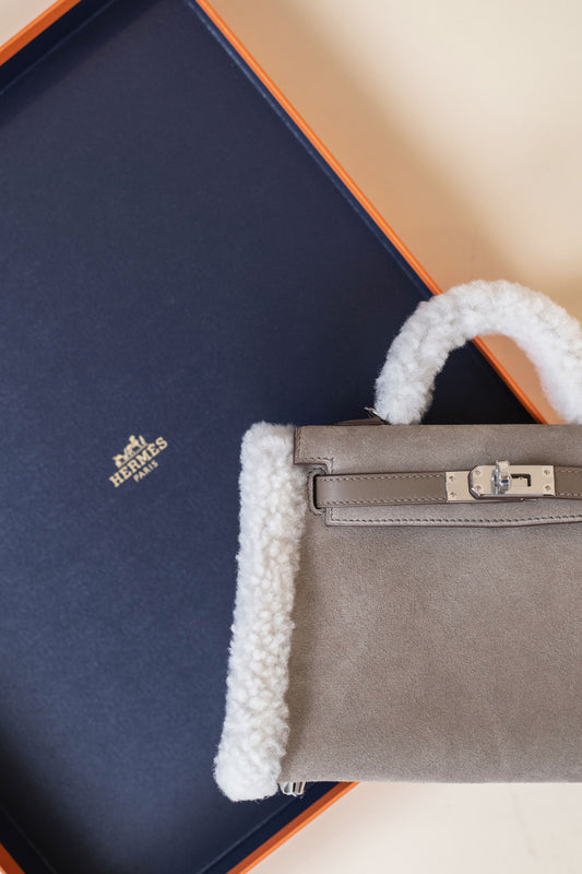 Hermès Mini Kelly 20 "Teddy" Gris Caillou PHW