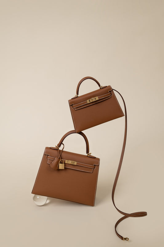 Hermès Mini Kelly 20 & Kelly 25 Epsom in Gold GHW