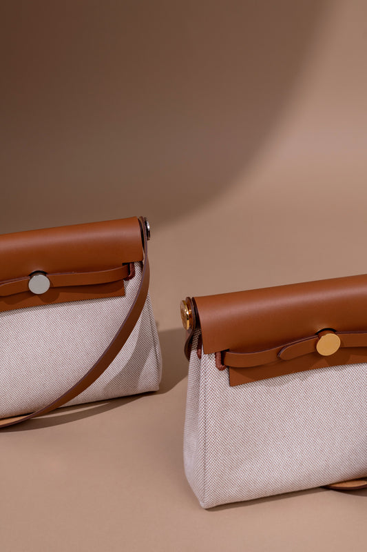 Hermès Mini Herbag 20 Fauve/Ecru Beige in Silver & Gold Hardware