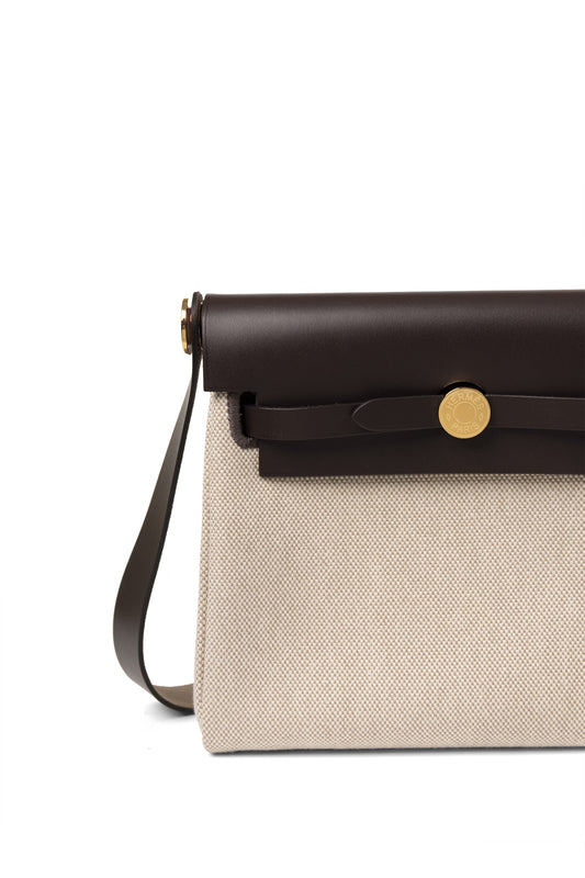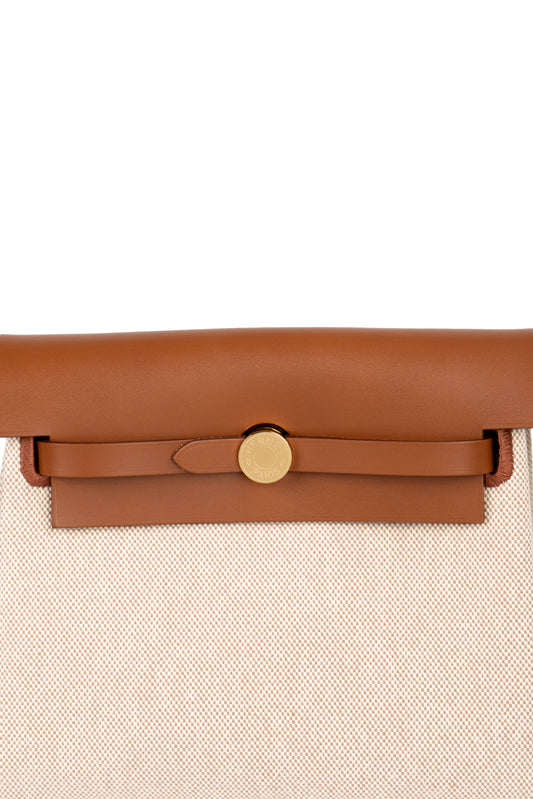 Hermes Mini Herbag in Beige/Ecru Canvas and Fauve Vache Hunter with Gold Hardware