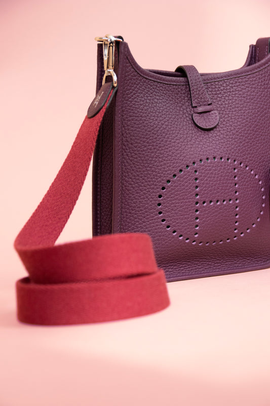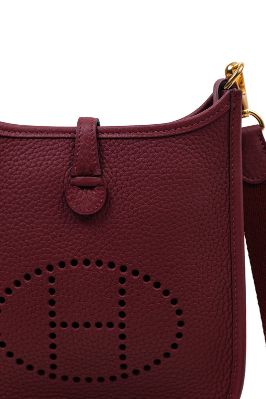 Hermès Mini Evelyne Clemence Cassis & Rouge Grenat