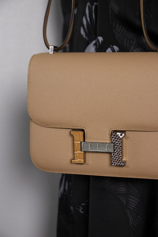 Hermès Mini Constance Epsom Poussiere with Exotic Buckle