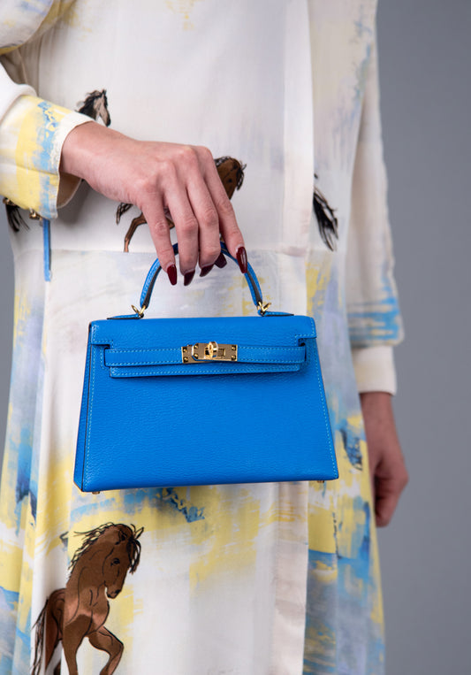 Hermès Mini Kelly Chevre Mysore in Blue Hydra GHW