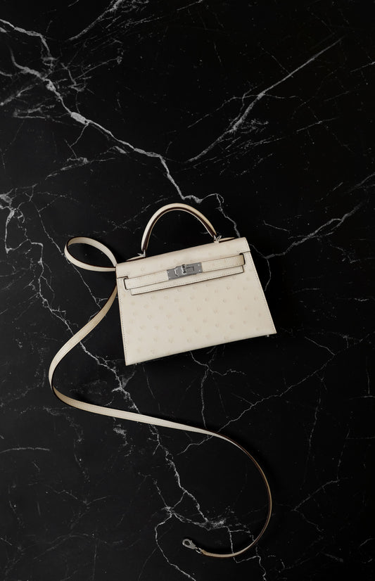 Hermès Mini Kelly 20 in Ostrich Nata PHW