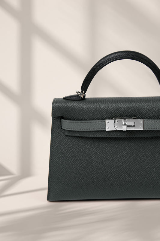 Hermès Mini Kelly 20 Epsom Tricolor Vert Mangrove/ Vert Amande / Black PHW