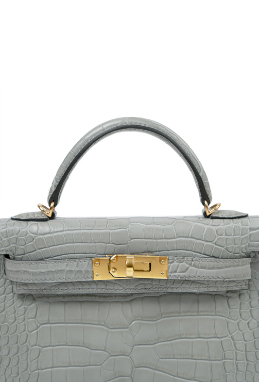 Hermes Mini Kelly Crocodile in Gris Cement with Gold Hardware