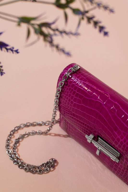 Hermès Mini Verrou Shiny Alligator Chaine Bag in Rose Scheherazade