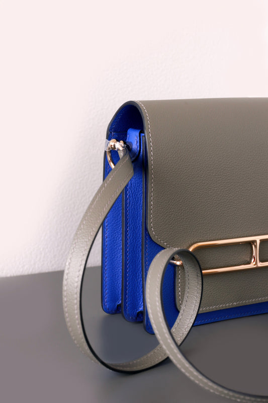 Hermès Mini Roulis 18 in Gris Meyer & Royal Blue GHW