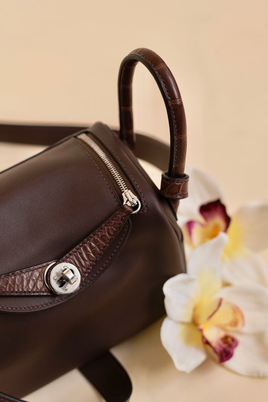 Hermès Mini Lindy 20 Touch in Moka/Havane PHW