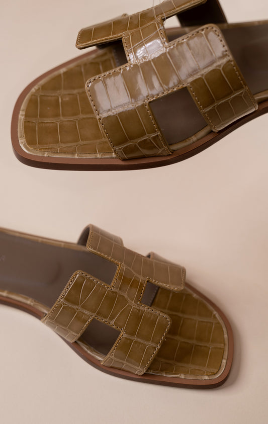 Hermès Oran Lizard Sandals in Vert Émeraude