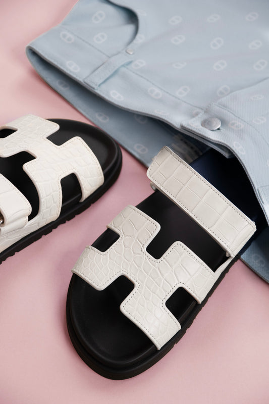 Hermès White Chypre Matte Alligator Sandals