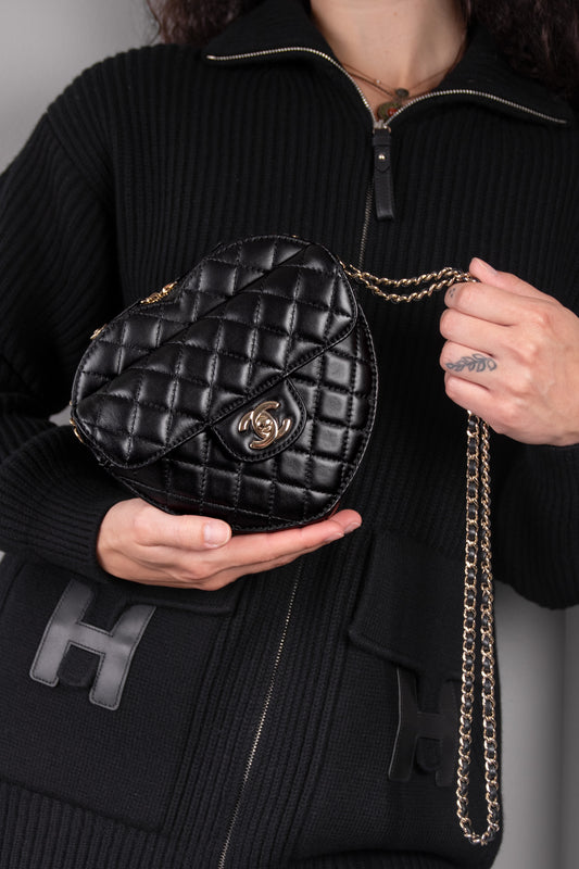 Hermès Wool Knit Black Jacket & Chanel Black Heart Bag