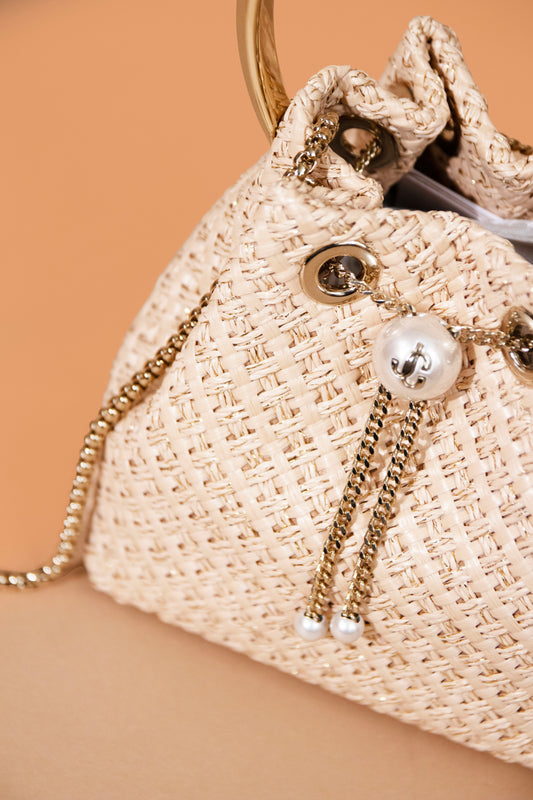Jimmy Choo Bon Bon Natural Raffia Bag With Pearl Closure