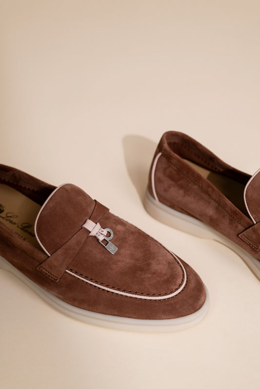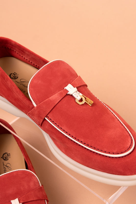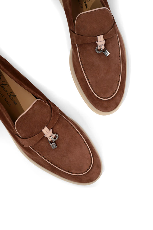 Loro Piana Suede Summer Charms Walk Loafers in Burgundy