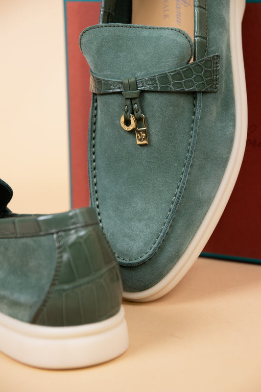 Loro Piana Summer Charms Walk Loafers in Alligator Green Lagoon