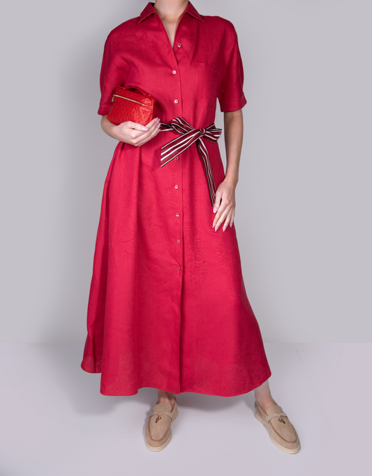 Loro Piana Red Clarissa Dress with Celine Soft Black Moccasins