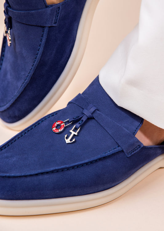 Loro Piana Nautical Charms Walk Babouche Loafers in Ceylon Float